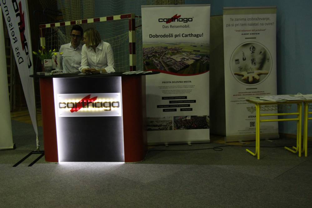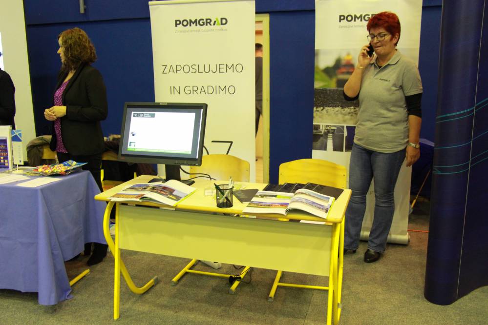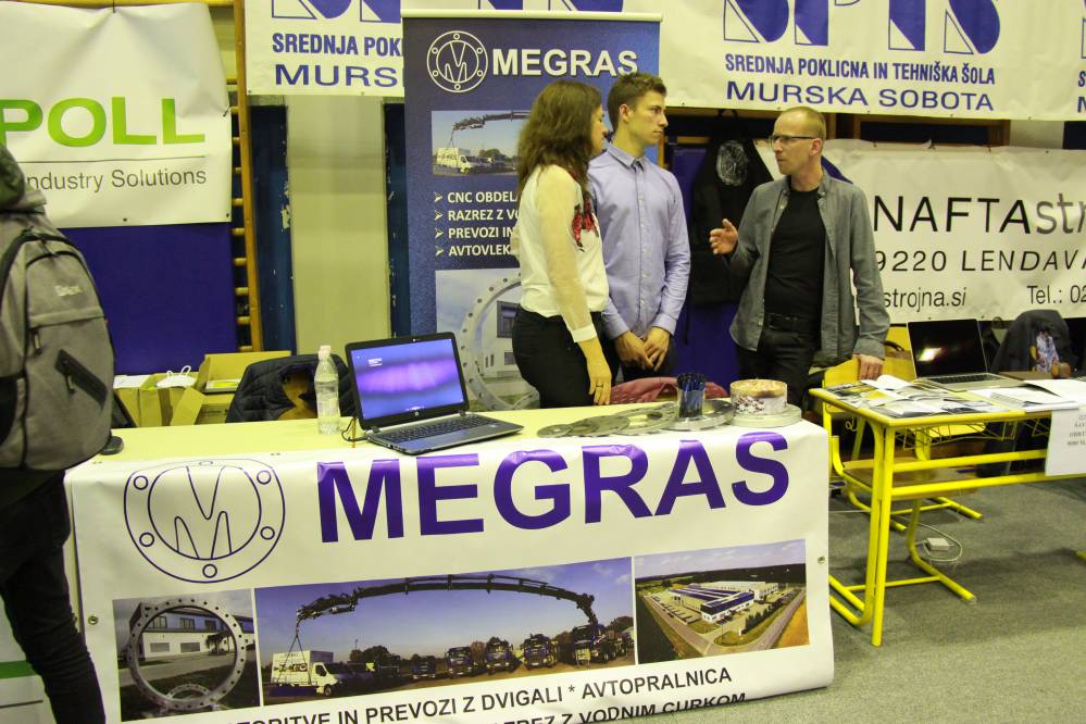 Danes, v četrtek, 11. aprila 2019 je na naši šoli potekala 1. Zaposlitvena tržnica, ki je bila organizirana s sodelovanjem Pomurske obrtne zbornice in Območne obrtno-podjetniške zbornica Murska Sobota ter s podjetji. Predstavilo se je kar 23 podjetij, kjer so lahko dijaki postavljali različna vprašanja, se pogovarjali o možnostih sodelovanja, ipd. Vsi predstavniki podjetij so z velikim veseljem prisluhnili ter odgovorili na zastavljena vprašanja.