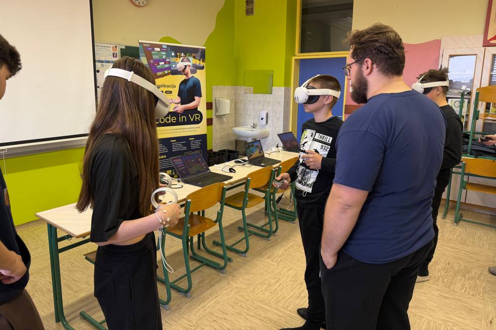 Učenci 8. c razreda OŠ Beltinci so v okviru projekta Inovativna pedagogika 5.0 preizkusili aplikacijo »Code in VR«. Z uporabo VR očal so v virtualnem okolju skozi zanimive izzive razvijali algoritmično razmišljanje in spoznavali osnove računalništva. Sodobna tehnologija jim je omogočila igrivo in interaktivno učno izkušnjo, pri kateri so odkrivali, da je lahko učenje programiranja tudi zabavno in motivirajoče.