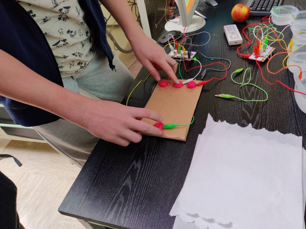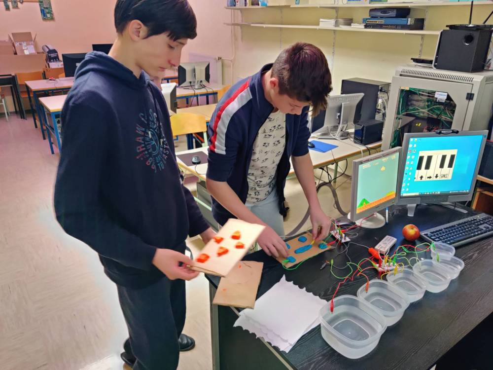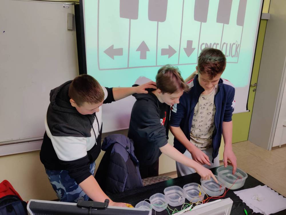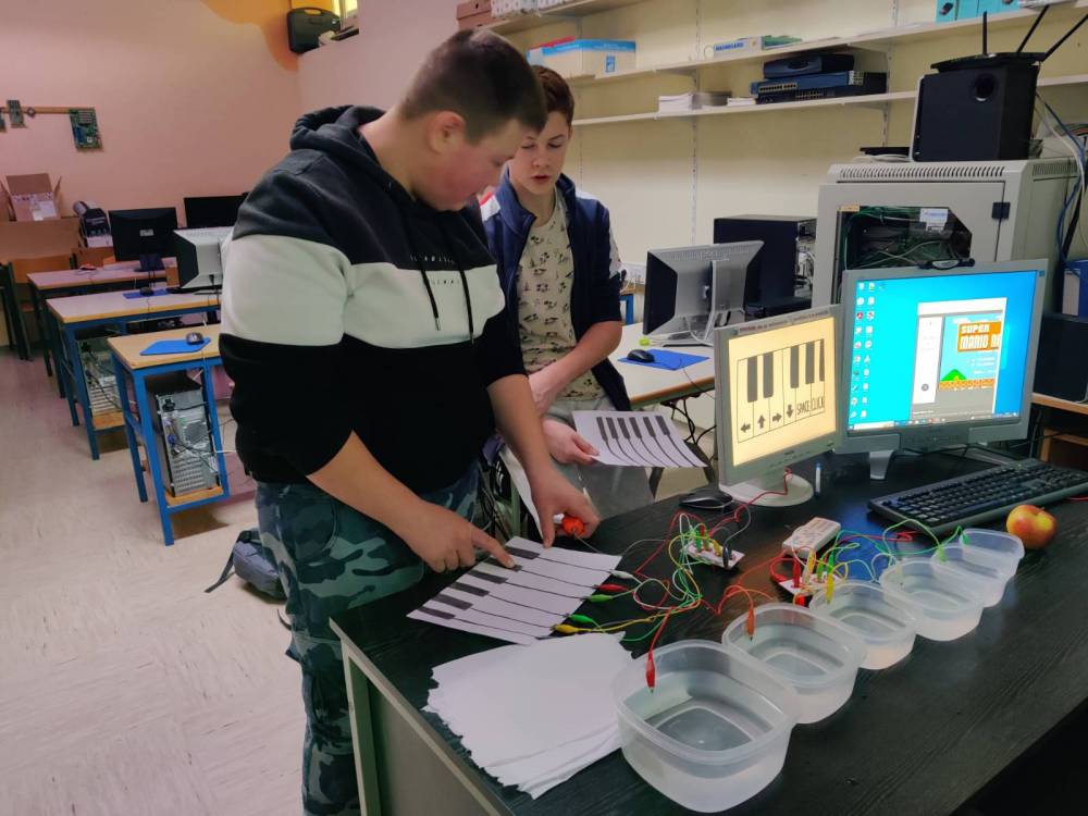 Delavnica s področja računalništva je bila zabavne narave. Učenci so si iz plastelina pripravili igralno konzolo in igrali igrico Super Mario. V nadaljevanju pa so na papir narisali klavir in zaigrali nekaj skladb.