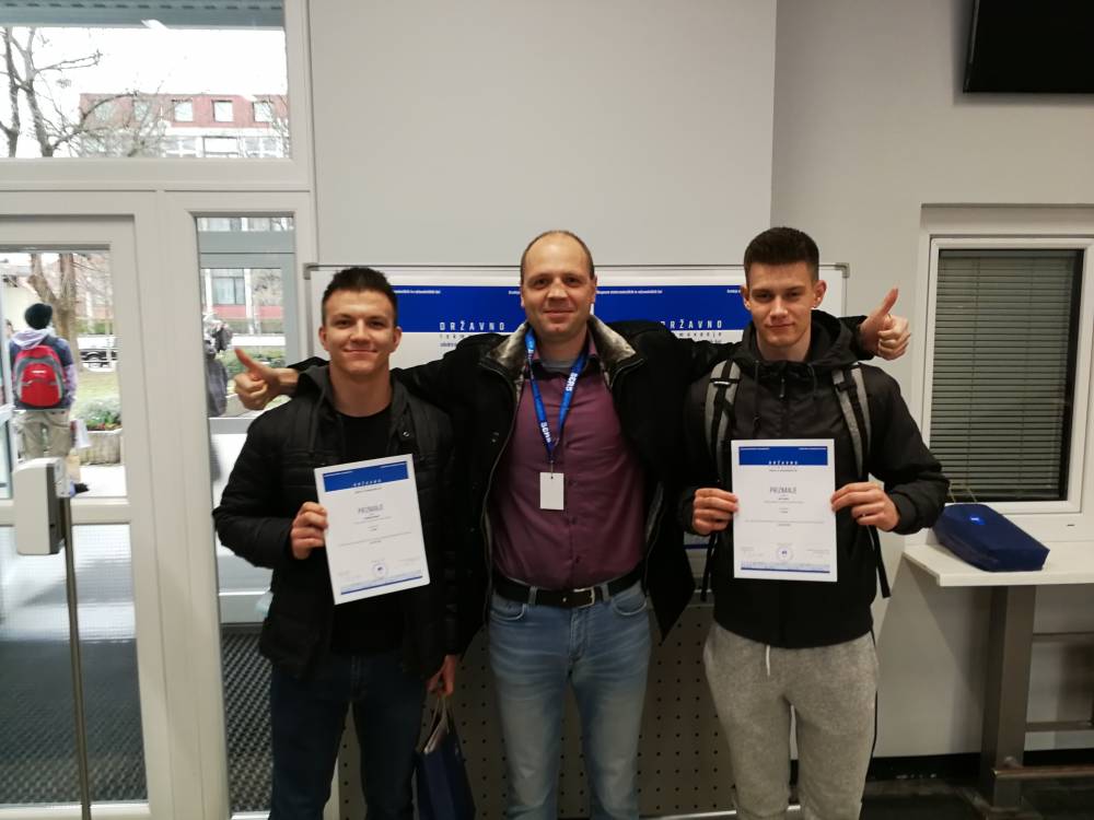 Jan Lončar in Benjamin Rajner sta pod mentorstvom Rajka Palatina osvojila 2. mesto ter tako postala državna podprvaka v elektrotehniki.