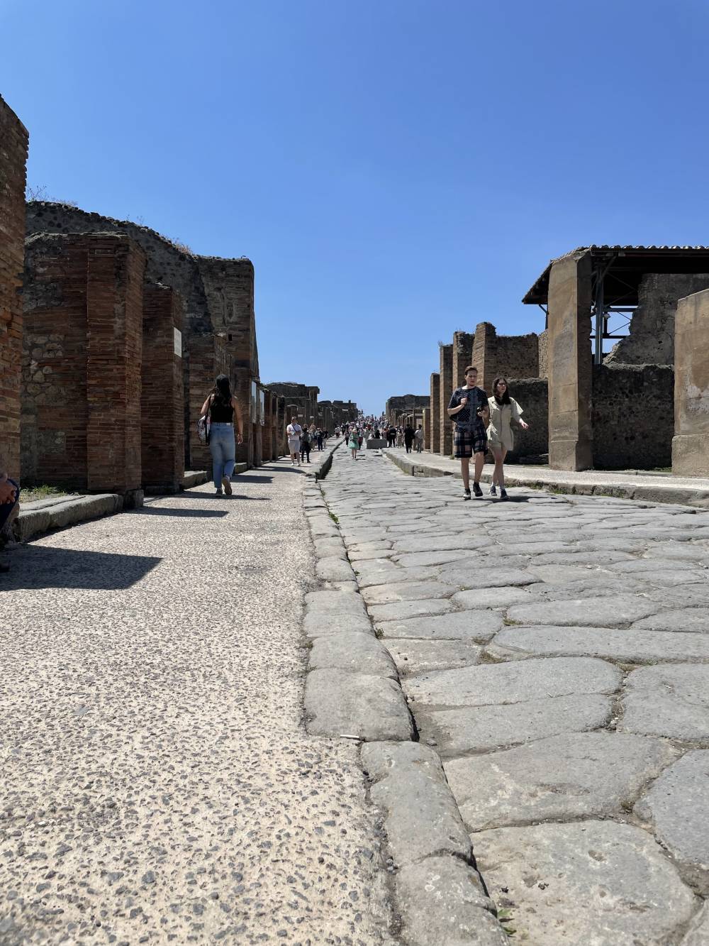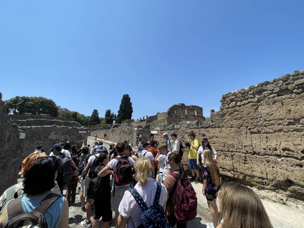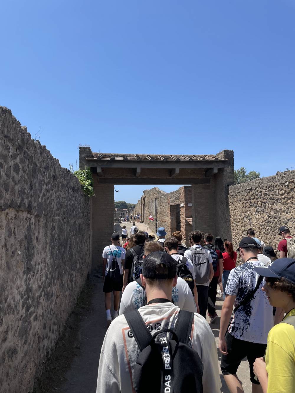 Po dolgi nočni vožnji nas je v sobotnih jutranjih urah pričakal s soncem obsijani Rim. Po ulicah mestnega središča smo se sprehodili do španskih stopnic, fontane Trevi, do Panteona. Nepregledna množica obiskovalcev, nam je preprečila notranji ogled. Pot smo nadaljevali do trga Navona, mimo Angelskega gradu do mestne džavice Vatikan. Kar nekaj časa smo čakali za vstop v baziliko Sv. Petra. Nekateri smo premagali 551 stopnic in se povzpeli na kupolo bazilike. Od tod nas je pot vodila do vatikanskih muzejev. Po ogledu smo imeli tudi nekaj prostega časa, za okrepčilo in raziskovanje mesta. Zvečer smo prispeli v hotel z "4 zvezdicami", ter takoj šli na večerjo, po večerji pa smo imeli čas za druženje in počitek. Naslednji dan smo se po zajtrku avtobusom odpeljali v Neapelj, kjer smo si ogledali antično mesto Pompeji. Nekateri so se odpravili na vulkan Vezuv, ostali pa smo šli raziskovat mesto.