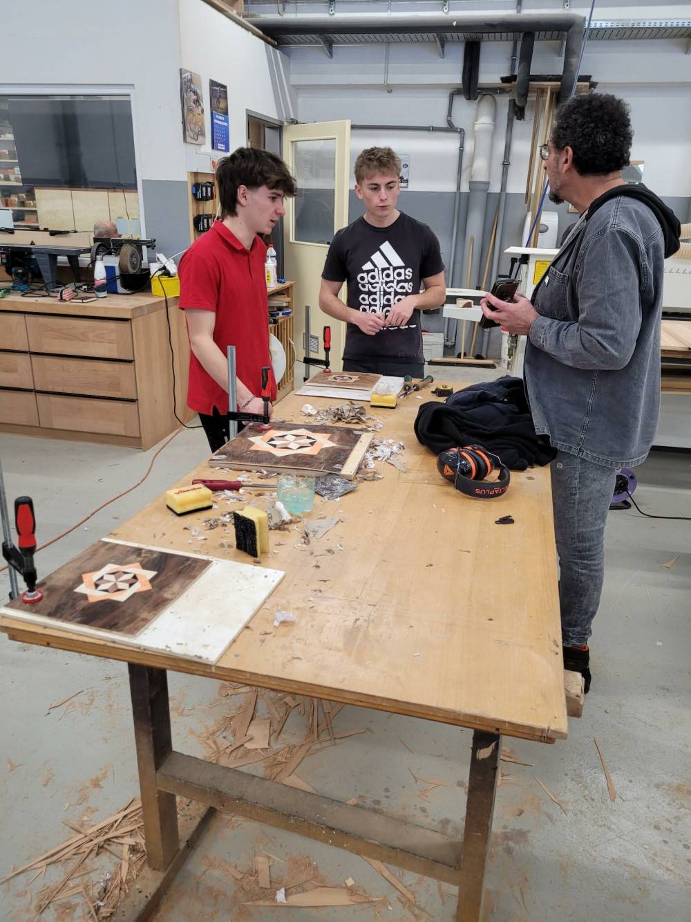 Od 5. 1. do 29. 1. pri nas gostimo tri dijake in profesorja iz francoske srednje in višje šole Lycée professionnel des arts du bois et collège Pierre Vernotte. Pod mentorstvom Roberta Košarja in Mira Vršiča izdelujejo leseni bife, ob tem pa s pomočjo Erasmus+ koordinatorice Klavdije Cerovšek spoznavajo lepote in dobrote Slovenije.