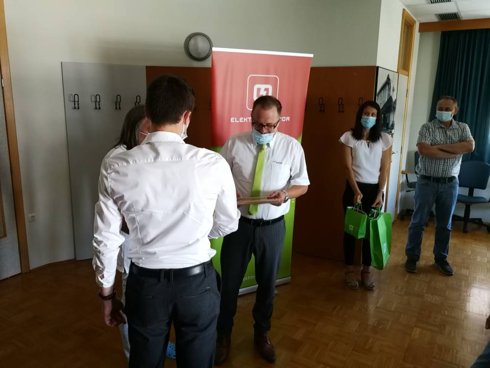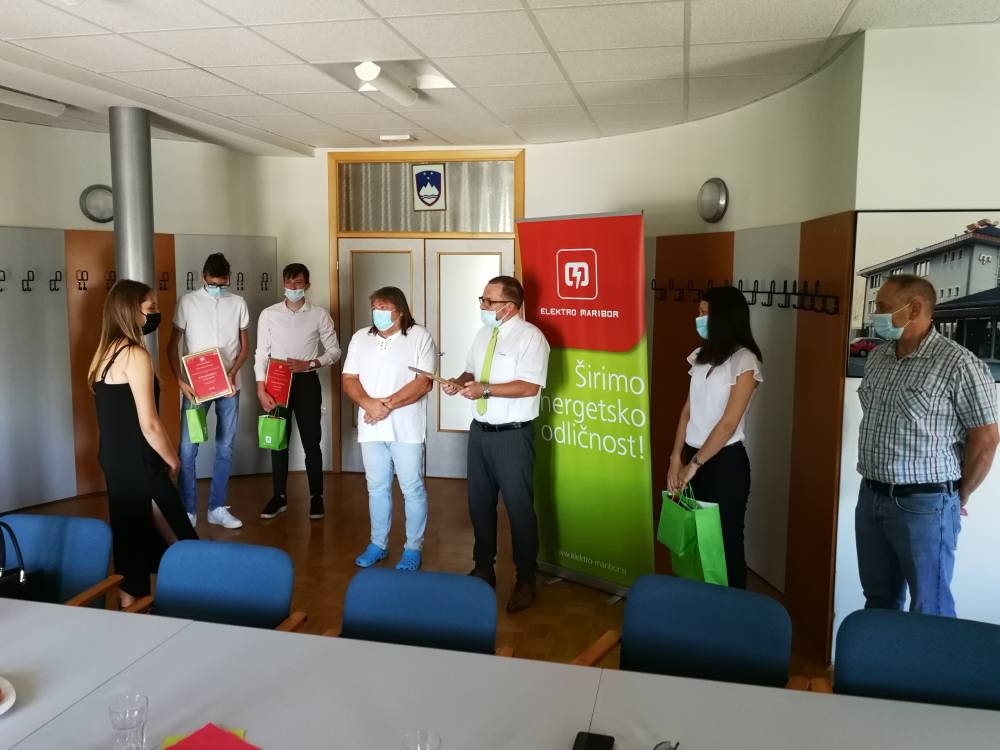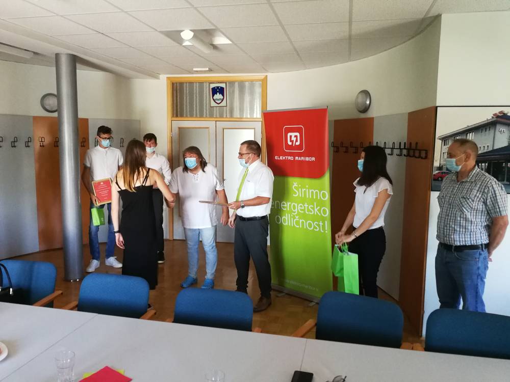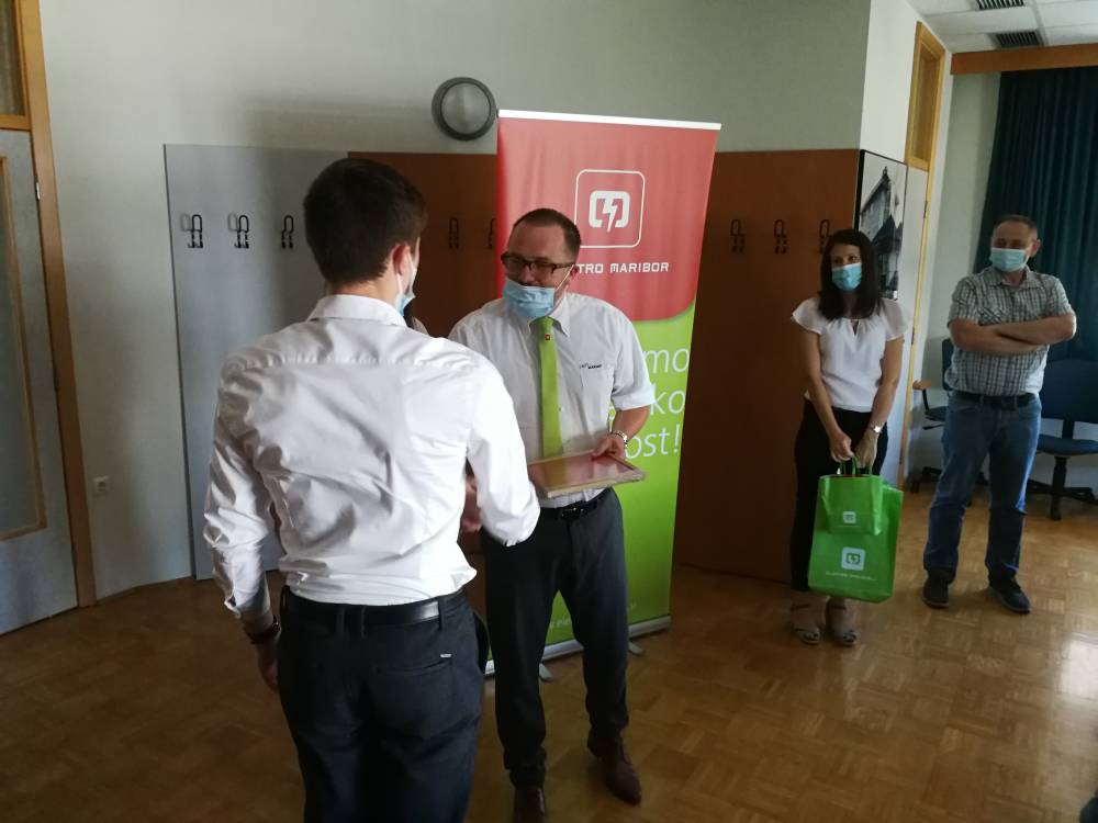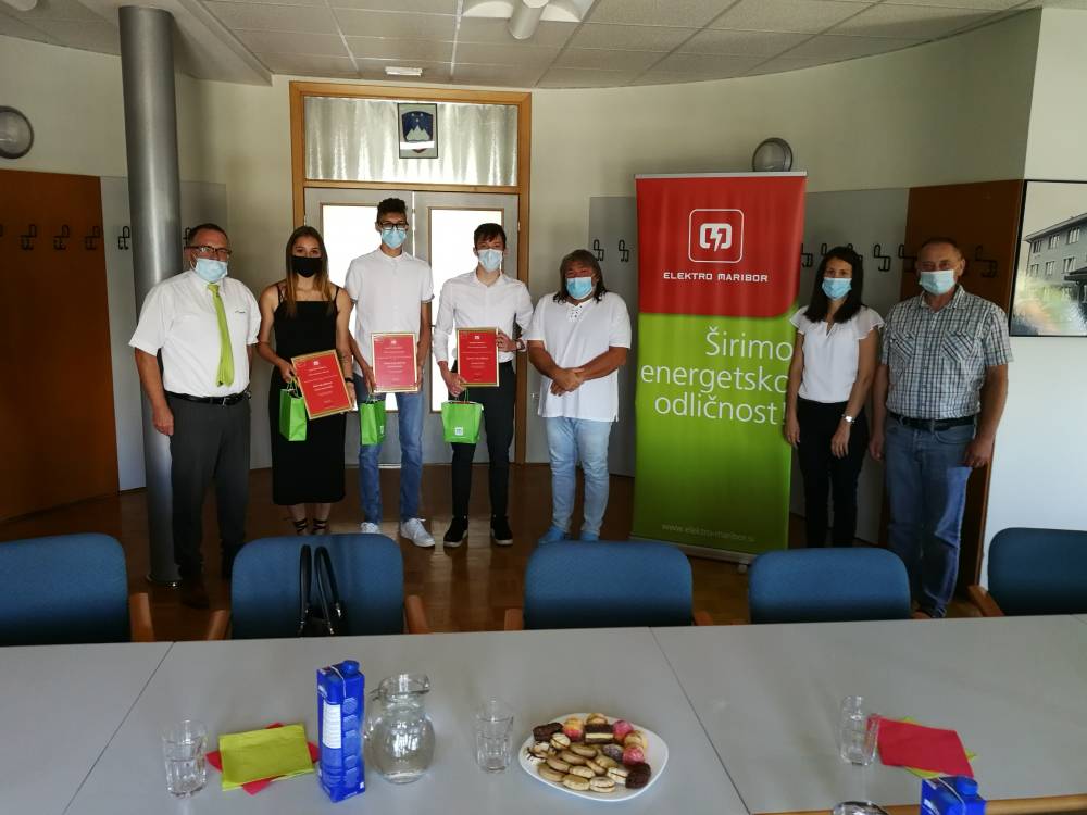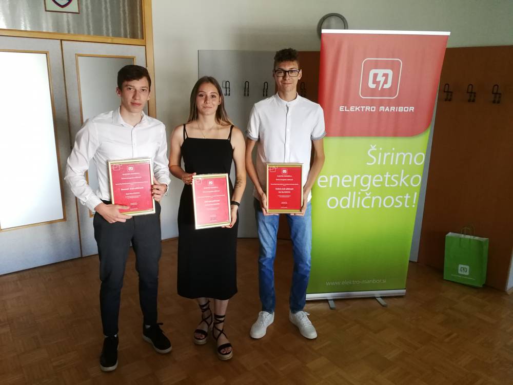 Elektro Maribor je že deseto leto zapored podelilo nagrade za odlične dosežke našim najboljšim dijakom v elektro usmeritvah. Nagrade je podelil direktor OE Murska Sobota g. Uroš Kolarič in ravnatelj naše šole g. Ludvik Sukič. Zlati znak odličnosti in nagrado v višini 300€ je prejela Maja Regoršek iz 4EL1, srebni znak odličnosti in nagrado v višini 200€ je prejel Žiga Sobočan iz 3EL3, bronasti znak odličnosti in nagrado v višini 100€ pa je prejel Miha Fekonja iz 4EL1. Vsem nagrajenim dijakom še enkrat čestitamo za odlične dosežke.