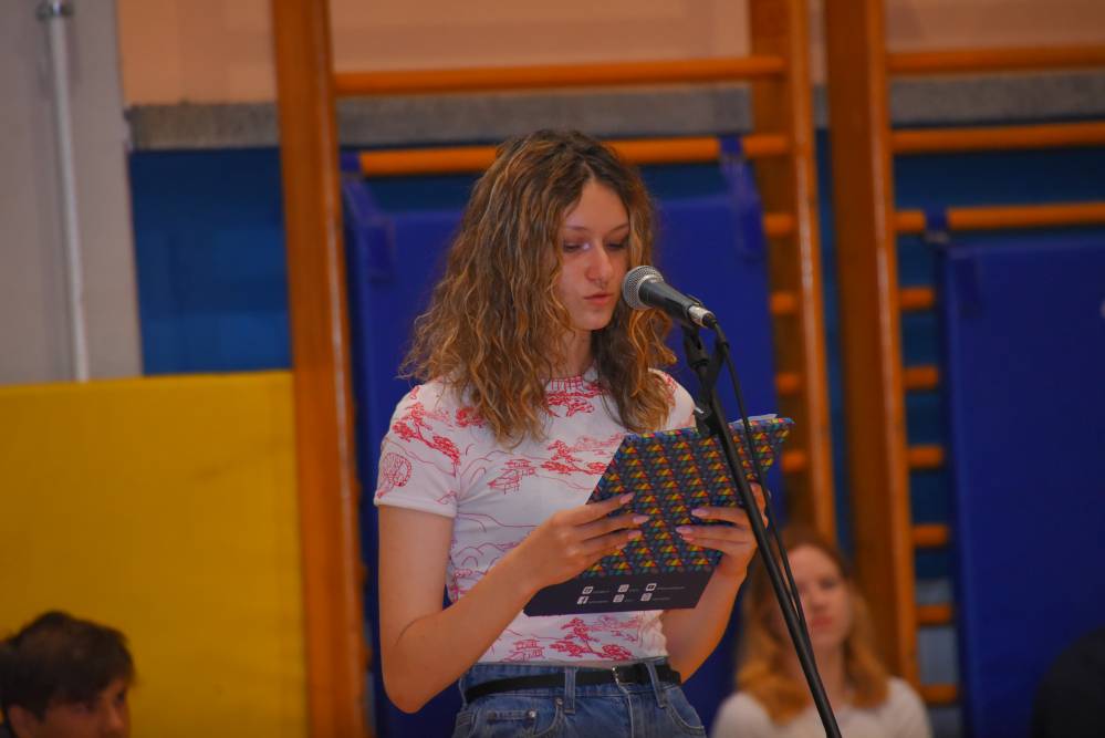 Na proslavi ob dnevu državnosti so sodelovali naši dijaki in dijakinje, ki so povezovali proslavo, recitirali, igrali na inštrumente in plesali. Proslava je bila pripravljena v aktivu anglistk.