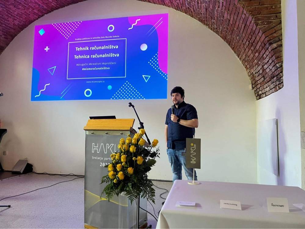 Sodelovanje smo predstavili na dogodku Letnega srečanja partnerjev podjetja Hakl IT, kjer je podjetje praznovalo tudi 18. rojstni dan! Ob tem prečudovitem jubileju smo oznanili še naše sodelovanje in na dogodku predstavljali šolo (Dominik Letnar, Niko Pozderec, Domen Zver, Eva Berke in Nela Škraban).