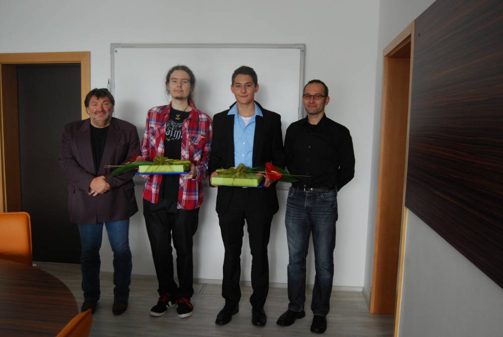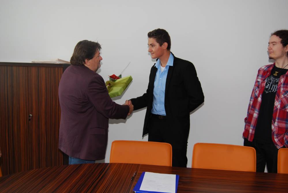 Ob navzočnosti ravnatelja in razrednika, sta oba dijaka včeraj prejela darilo.