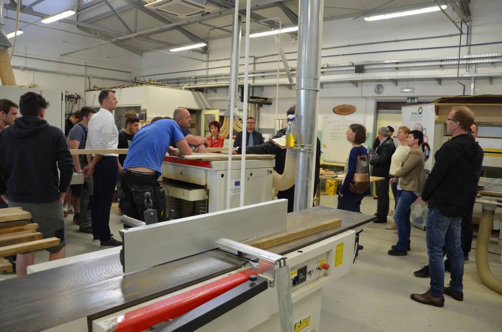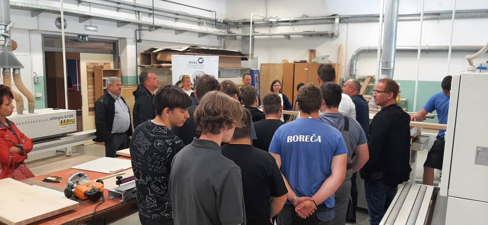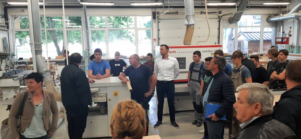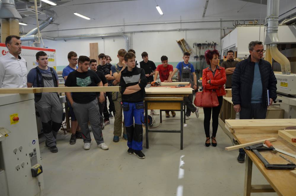 Srečanje je bilo namenjenu praktičnemu usposabljanju dijakov v podjetjih (potek, obveznosti, težave) in razpravi o možnostih uvedbe vajeniškega sistema izobraževanja za poklic mizarja na SPTŠ Murska Sobota. Sledil je ogled naše delavnice, predstavitve podjetij dijakom in razgovor z dijaki.