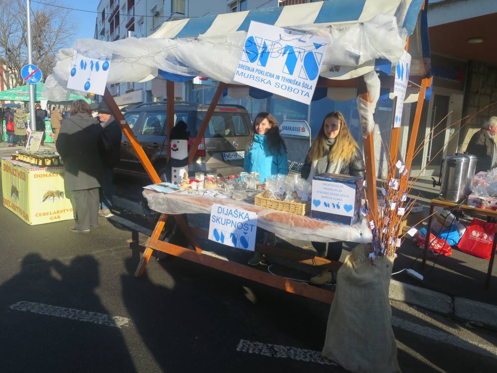 Utrinki naše stojnice iz mikloševega senja v Murski Soboti, kjer smo zbirali prostovoljne prispevke za našega dijaka, ki je zbolel za rakom.