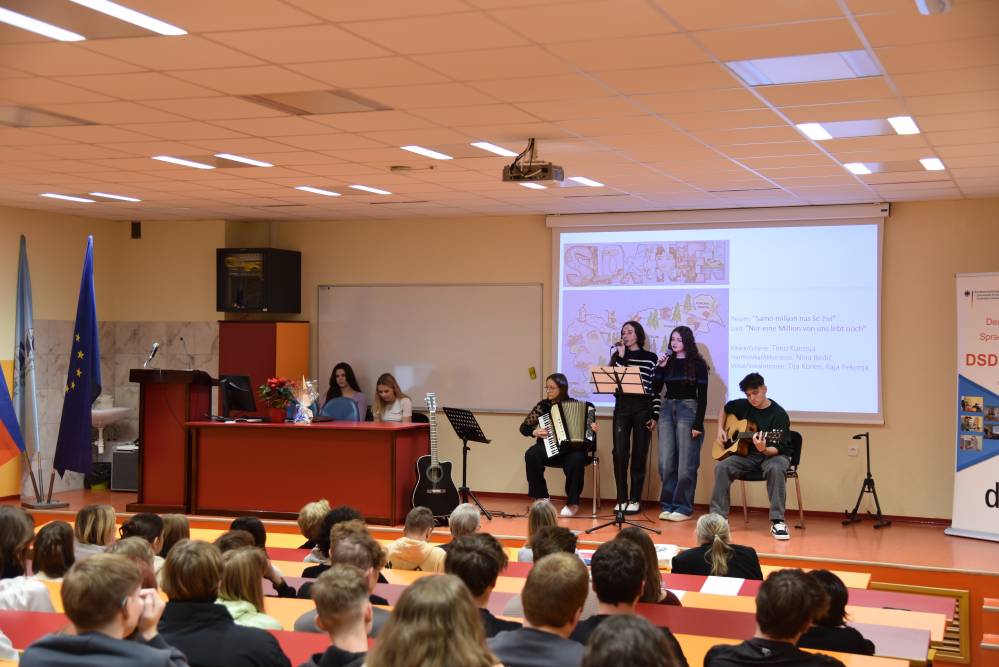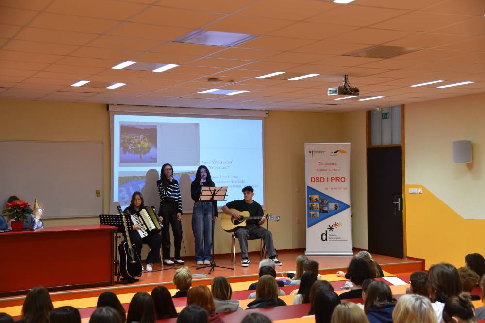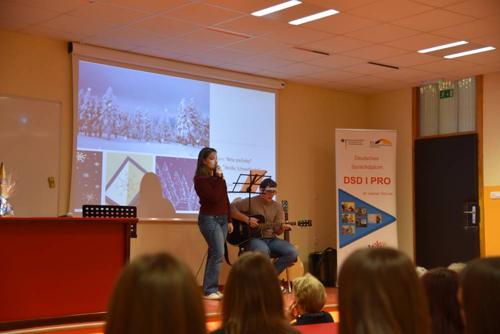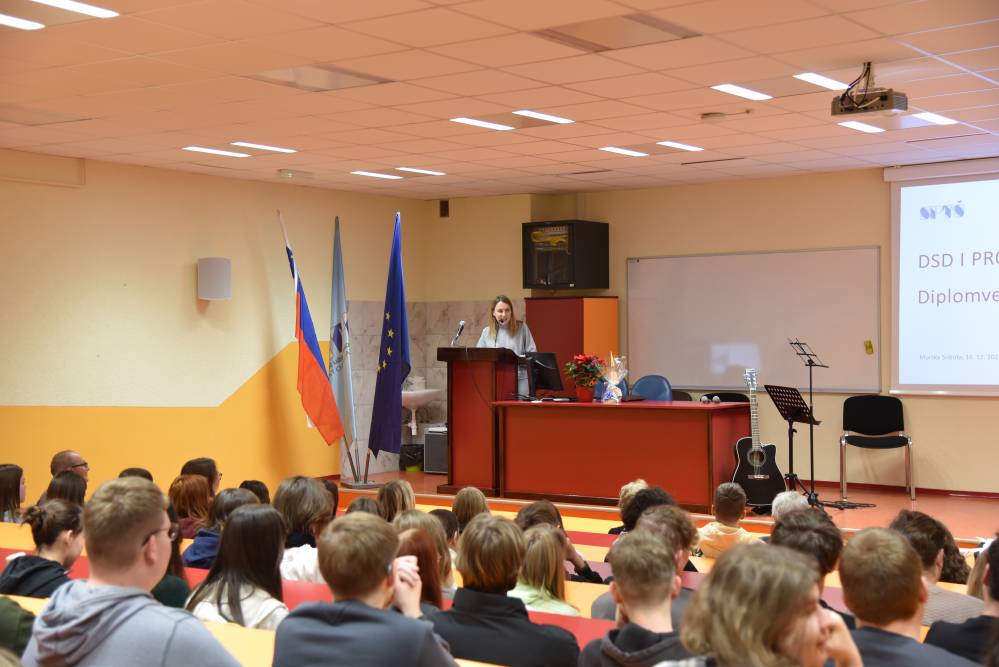 V ponedeljek, 16. 12. 2024, je na naši šoli potekala svečana podelitev Nemških jezikovnih diplom. Dogodka se je udeležila tudi strokovna svetovalka za nemški jezik Andrea Rückert, ki je nagovorila dijake in podelila diplome.