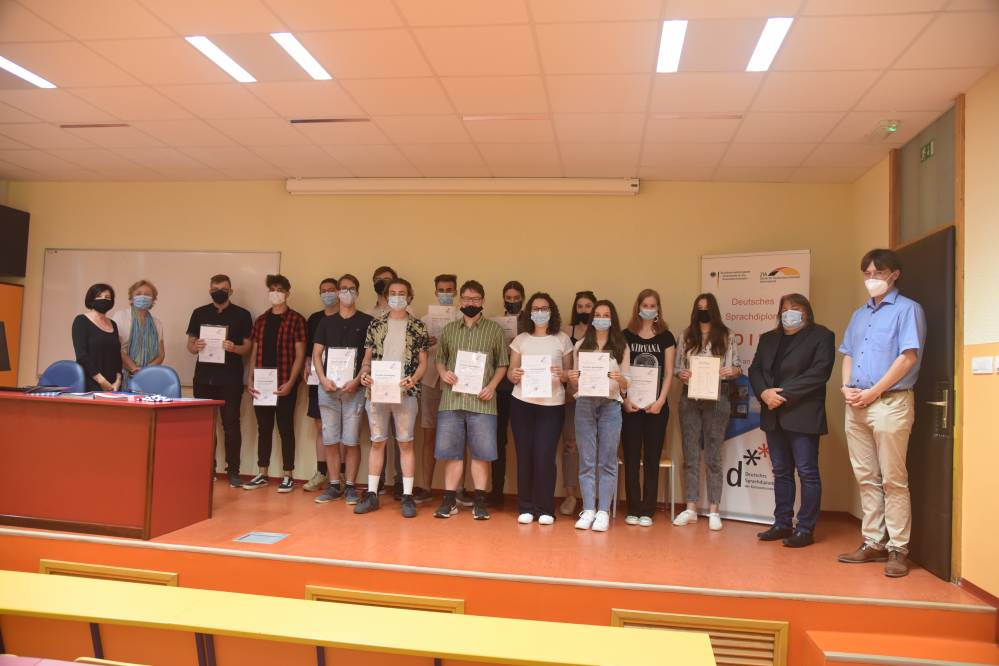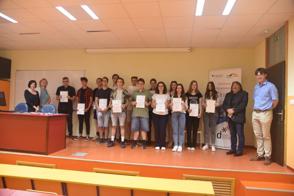 Nemško jezikovno diplomo na stopnji B1 je prejelo 14 dijakinj in dijakov, ena dijakinja pa na stopnjiji A2. Diplome je dijakom podelil dr. Philipp Reisner, strokovni svetovalec za nemščino.