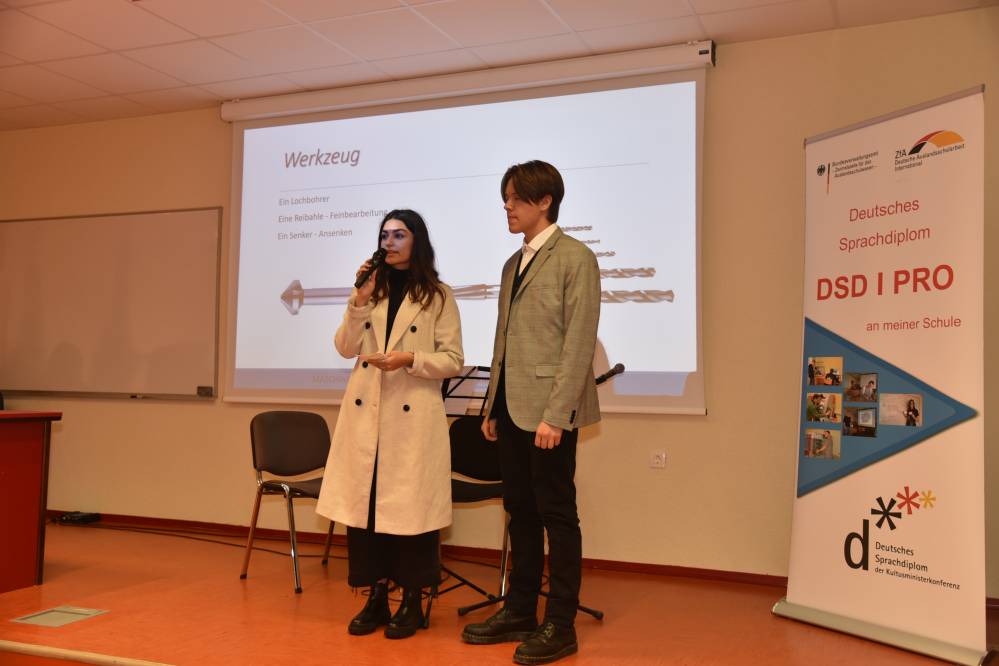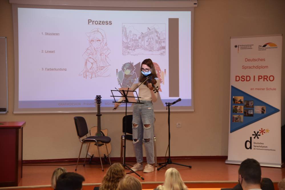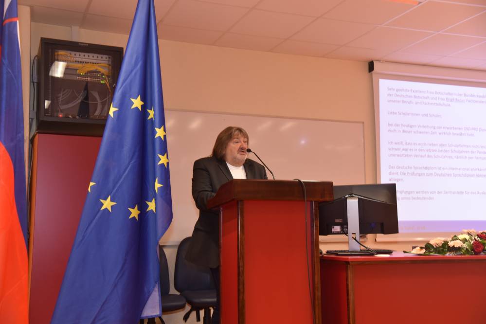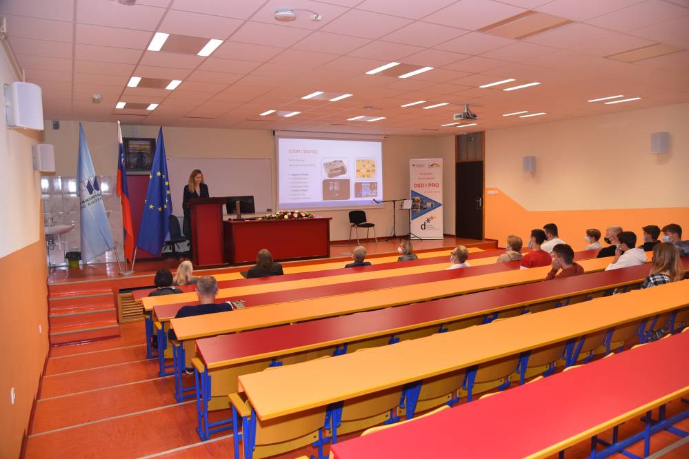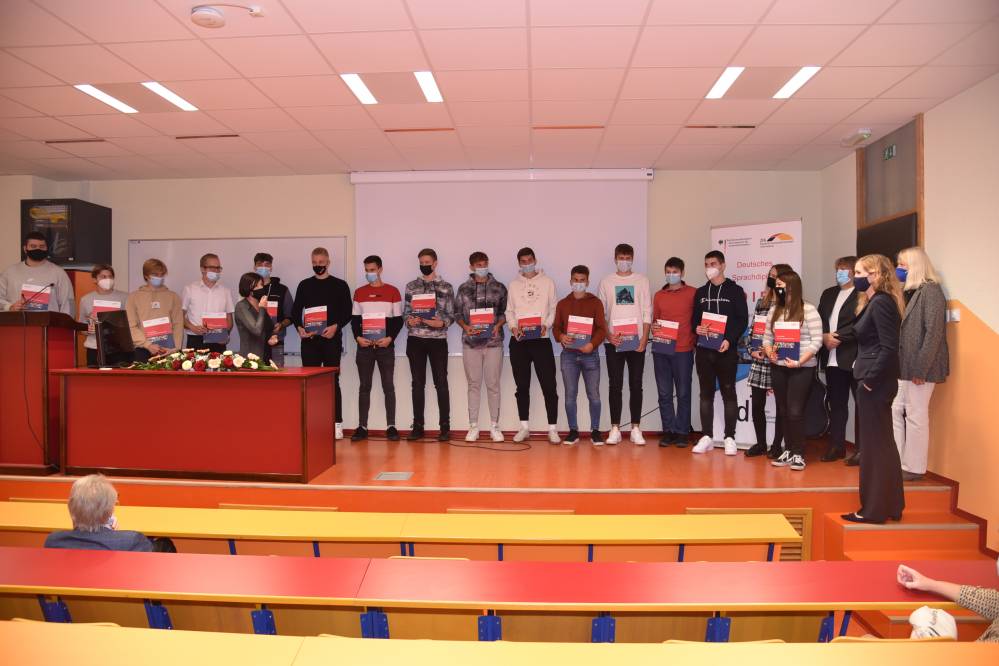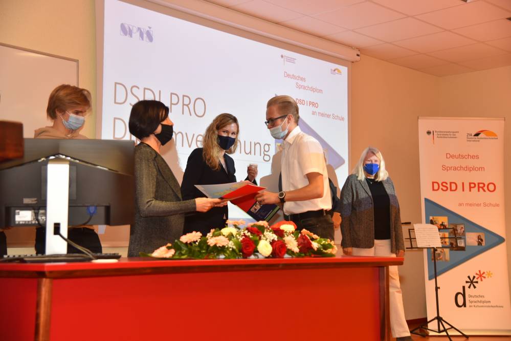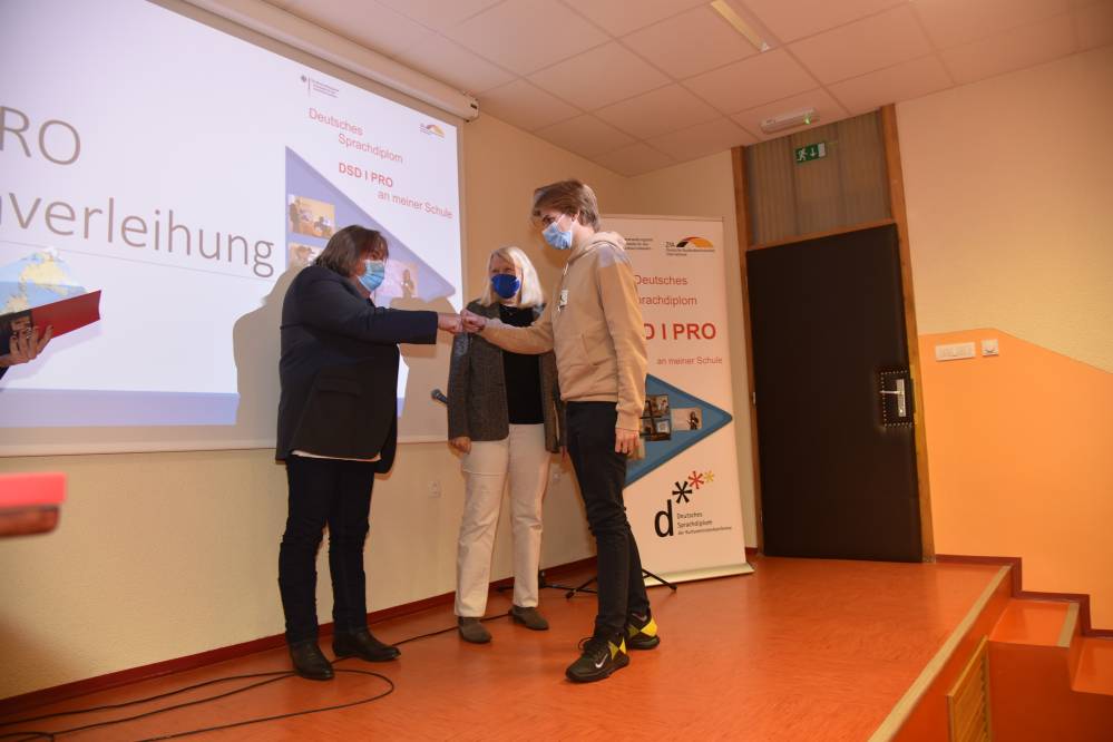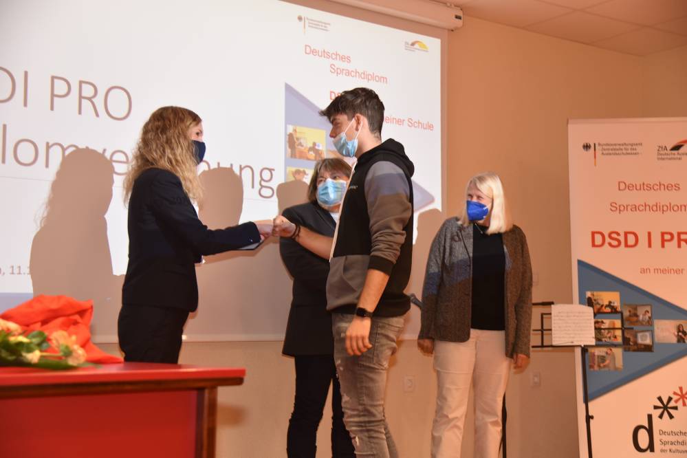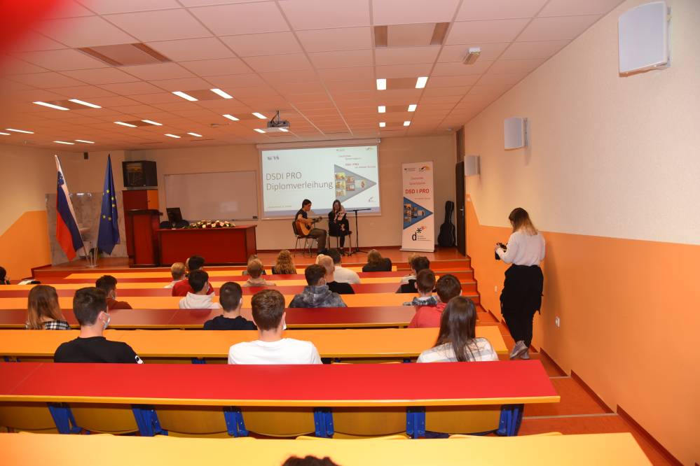 V ponedeljek, 11. oktobra 2021, je na naši šoli potekala peta svečana podelitev Nemških jezikovnih diplom DSD I PRO (poklicno usmerjena različica Nemške jezikovne diplome). Dijaki na ustnem delu izpita predstavijo temo s svojega strokovnega področja, zato je zanimanje toliko večje.