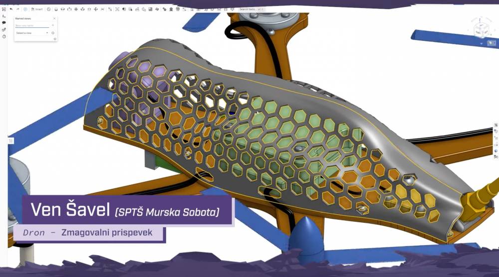 Ven Šavel, iz razreda 4K1 programa strojni tehnik, je na letošnjem nagradnem natečaju za najboljše 3D-modele in projekte, izdelane s programsko opremo PTC Creo ali Onshape, osvojil 1. mesto v kategoriji Najboljši 3D-modeli letalne naprave. Zmodeliral in izdelal je drona.