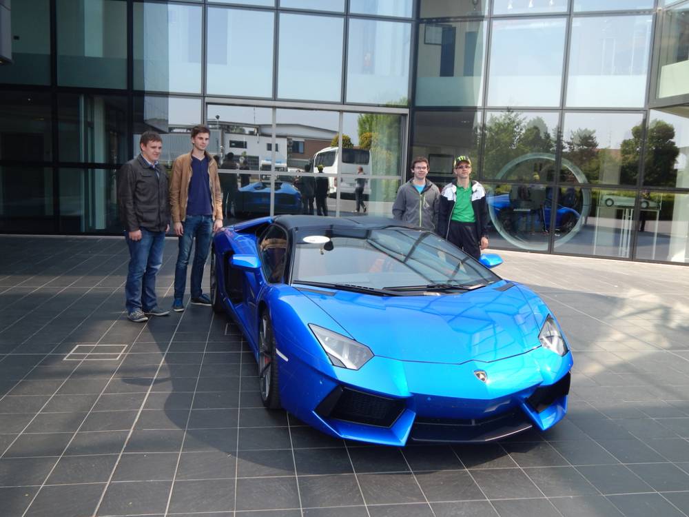 Na pot smo se odpravili v zgodnjih jutranjih urah, do dobra naloženi s sendviči, raznimi prigrizki, pijačo in veliko dobre volje. Pot nas je vodila po avtocesti mimo Benetk v pokrajino Emilija Romanja in kraja Sant Agata Bolognese, kjer je sedež tovarne Lamborghini. Ogledali smo si muzej oz. galerijo ter se pod strokovnim vodstvom v manjših skupinah podali na ogled tovarne. Celotna proizvodnja poteka ročno, kar smo se prepričali na lastne oči in bili priča izdelavi prestižnega modela Aventador in Huracan.