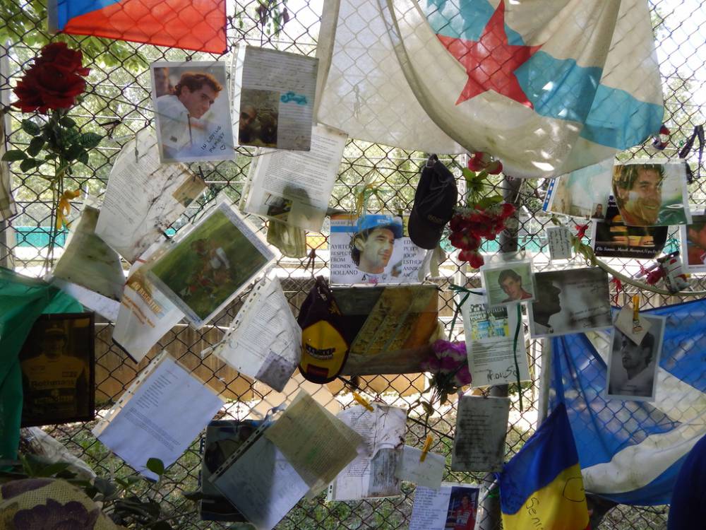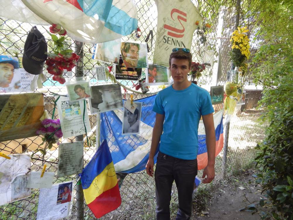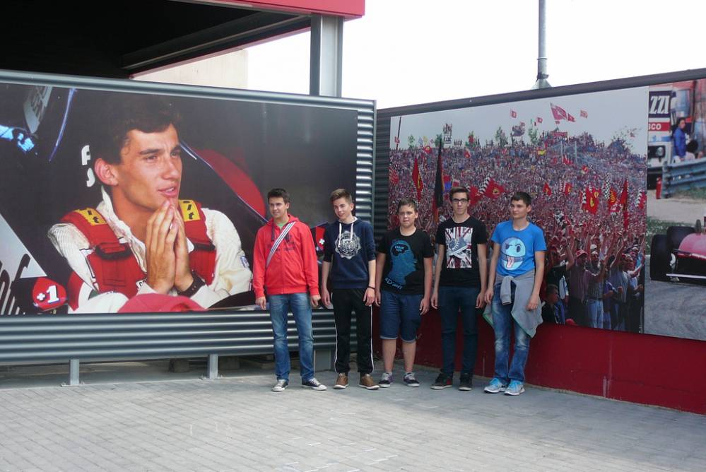 Avtobus nas je odložil pred Avtodromom,ki nosi ime po Enzu in Dinu Ferrariju. Peš smo se odpravili do spomenika Ayrtona Senne.