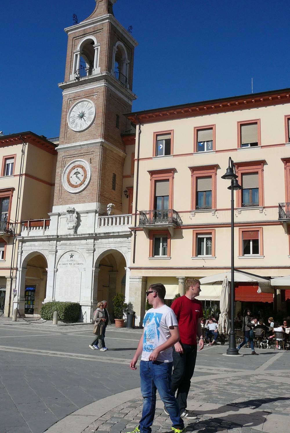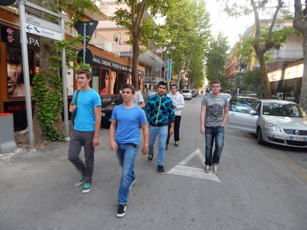 Sledila je vožnja mimo Ravenne do mesta Rimini. Sprehodili smo se po mestu in si ogledali glavne znamenitosti mesta (Tiberijev most, trg Piazza Cavour, Avgustov slavolok ...), se na hitro okrepčali ali posladkali s pristnim italijanskim sladoledom. Utrujeni in željni toplega obroka smo se namestili v hotelu in opravili večerjo (seveda testenine na različne načine). Utrujenost je hitro minila in odpravili smo se raziskovat prostrane plaže Riminija. Nekateri bolj pogumni so opravili majsko kopanje v ne prav toplem Jadranskem morju. Sledil je piknik na plaži, obisk diskoteke, nekateri pa smo od utrujenosti kar popadali po posteljah.