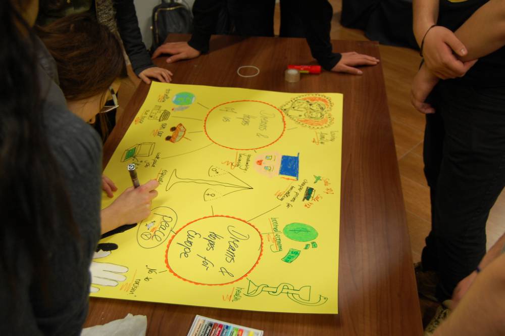 Drugi dan smo preživeli v kulturnem centru, kjer so se skupine predstavile ter nam predstavile njihove intervjuje o prihodnosti. Po tem smo imeli delavnico izdelovanja glinenih izdelkov ter uro plesa.